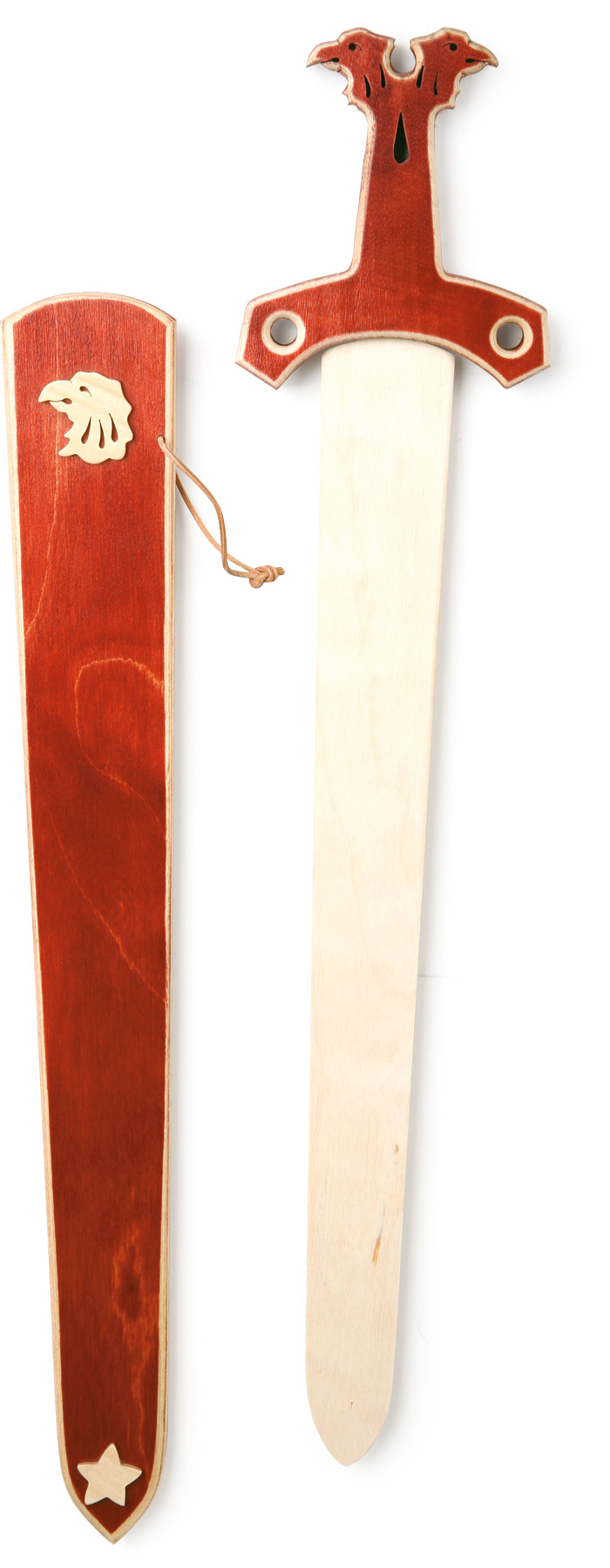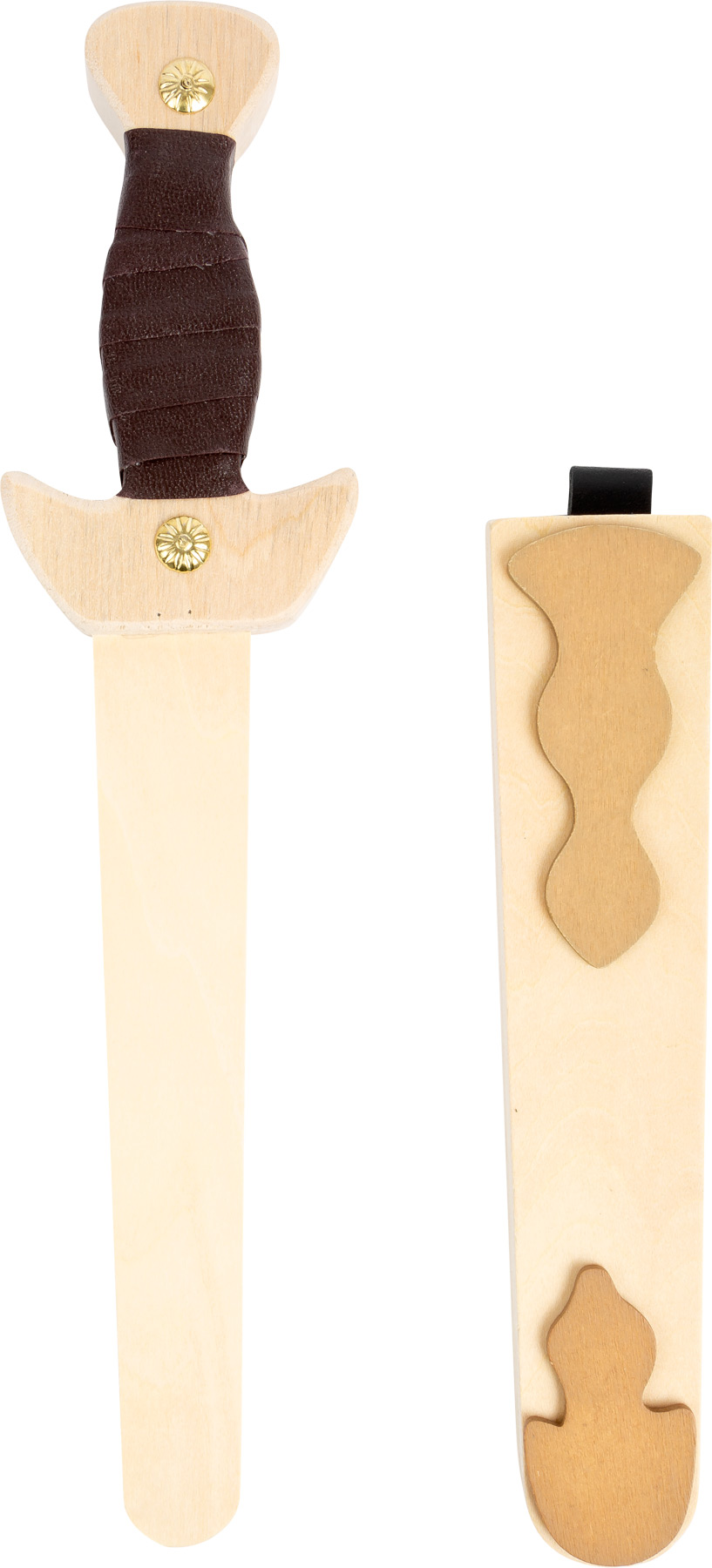 Dieser formschöne Dolch aus Holz ist ein echter Hingucker! Mit einem Lederband umwickelt liegt er gut in der Hand und ist toll verarbeitet. Eine Scheide aus Holz mit Applikationen komplettiert das 2-teilige Set. Dank der abgerundeten Klinge kann auch im aktiven Rollenspiel nichts passieren. Dieser Dolch ist außerdem ein tolles Accessoire für Verkleidungen oder Karnevalskostüme! Da werden alle anderen Ritter aber Augen machen!